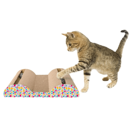 Der Kratzbaum aus Pappe von Camon ist die ideale Lösung, um das angeborene Bedürfnis der Katzen nach Kratzern zu befriedigen und gleichzeitig Möbel und Vorhänge zu schonen.
