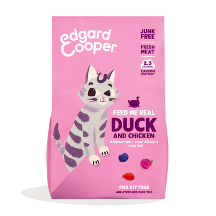 Edgard Cooper Fresh Ground-FedChicken and Duck, Rose Blossom & Blueberries liefert gesunde Proteine und alle Nährstoffe, die Ihr Kätzchen braucht.