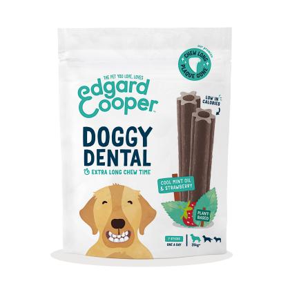 Edgard Cooper Doggy Dental für Hunde ist ein Zahnpflegestift mit verlängerter Wirkung, der selbst hartnäckigen Zahnbelag wirksam bekämpft . Die Stäbchen sind luftgetrocknet und halten lange, bevor der Hund sie ganz zerkauen kann.