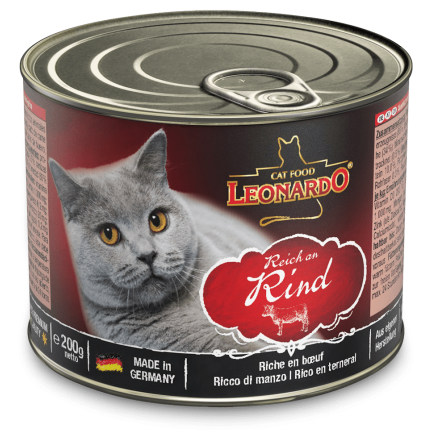 Leonardo Ricco di Manzo ist ein Nassfutter für Katzen, das ausschließlich frisches Fleisch enthält. Aufgrund der hohen biologischen Wertigkeit dieser Produkte benötigt die Katze relativ wenig Futter, um ihren Tagesbedarf zu decken.