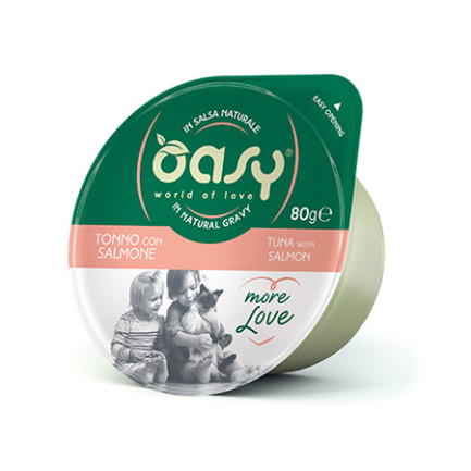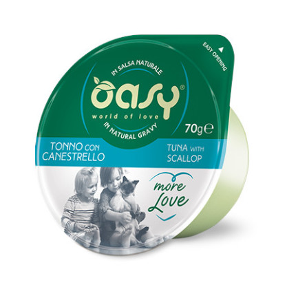 Oasy More Love Nassfutter für Katzen ist eine ausgezeichnete Linie mit noch mehr Qualität: praktische Einzelportionsbecher in Sauce, zubereitet mit den besten frischen Zutaten für einen außergewöhnlichen Geschmack.