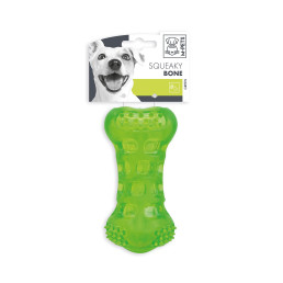 M-PETS Squeaky Rubber Bone for DogsGreen color - Measures 11.8 x 5.8 cm