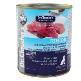 Dr.Clauder's Selected Meat Junior is a complete wet food for puppy dogs up to 12 months of age, with high-quality, gently steamed selected meats.