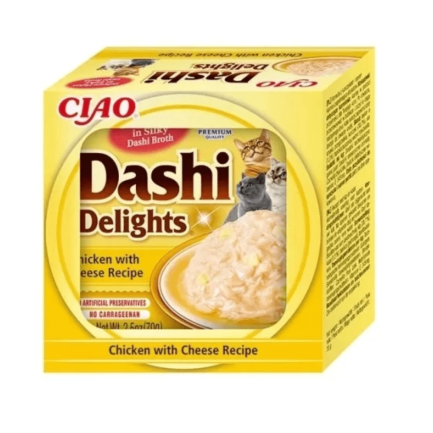 Inaba Dashi Delights Wet Food for Cats is the delicious natural broth food for cats. It stimulates the cat's appetite due to the richness of broth(dashi in Japanese) and grain-free. Enriched with antioxidants naturally found in green tea extract. Plus, the tubs in which the dashi are contained are innovatively made and ensure freshness without adding preservatives.