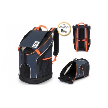 Gracias a la sólida estructura de la mochila, es cómoda de llevar y transportar como mochila incluso durante varias horas; la práctica asa también permite utilizarla como un transportín de mano normal. Una vez parada, la parte inferior se abre gracias a una cremallera y la mochila se convierte en una cómoda perrera de viaje.