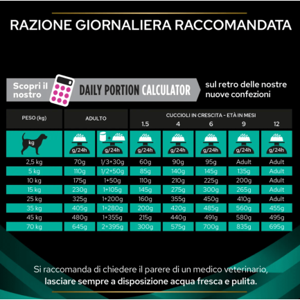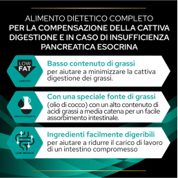 Ración diaria: ver tabla. Modo de empleo en seco: El período de utilización recomendado es de 3 a 12 semanas para la compensación de las malas digestiones, pero de por vida en caso de insuficiencia pancreática crónica, y de 1 a 2 semanas para la reducción de los trastornos agudos de absorción intestinal, durante las diarreas agudas y los períodos de convalecencia posteriores. Se recomienda pedir consejo al veterinario antes de utilizarlo. Dejar siempre agua limpia y fresca a disposición del animal. También disponible en forma húmeda. Para compensar una mala digestión, puede administrarse una dieta mixta. Para perros de más de 70 kg de peso: administrar 35 g más de alimento seco por cada 5 kg de peso adicionales. Para cachorros, consulte a su veterinario sobre las raciones diarias recomendadas.