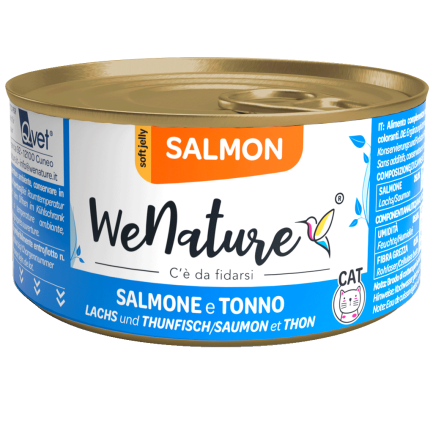 WeNature SALMON es la gama complementaria de comida húmeda para gatos que contiene salmón como materia prima principal.