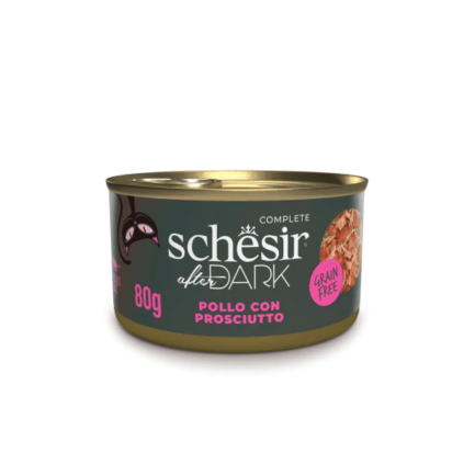 Schesir After Dark en boîtes de 80 g est disponible en 4 recettes différentes, toutes complètes, équilibrées et sans céréales