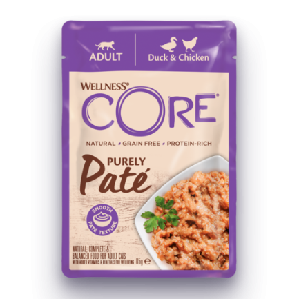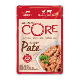 Wellness Core Purely Pate est une nourriture humide complémentaire pour chats adultes, sous forme de pâté tendre.
