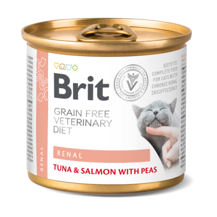 Brit Veterinary Diet Renal cibo umido per gatti indicato come supporto della funzionalità renale in caso di insufficienza renale cronica. Disponibile anche in crocchette