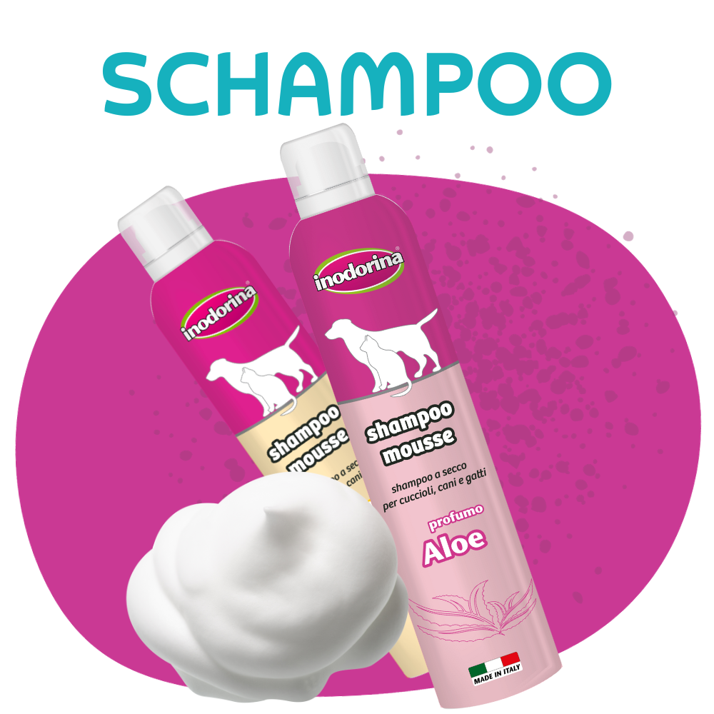 I prodotti per la pulizia di pelle e pelo del cane e del gatto sono necessari per garantire una pelle sana e un mantello lucente. Lo Shampoo a Secco in Mousse di Inodorina è: