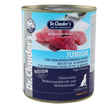 Dr.Clauder's Selected Meat Junior è un alimento umido completo per cani cuccioli fino a 12 mesi di età, con carni selezionate di alta qualità, delicatamente cotte al vapore.