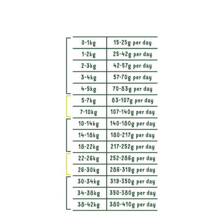 La ricetta contiene solo le proteine migliori che la rendono altamente nutriente e facilmente digeribile. Ogni confezione contiene verdure, frutta e erbe fresche e saporite, che apportano tutte le vitamine, i minerali e gli antiossidanti necessari al cane per rimanere sano. Questa ricetta, non contiene cereali ed è priva di glutine. Ideale per chi ha lo stomaco sensibile.