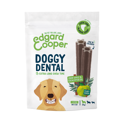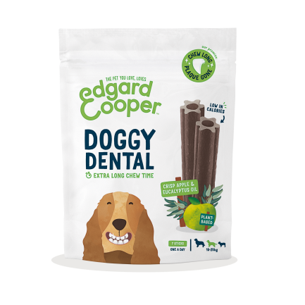 Una corretta igiene orale è fondamentale per la salute generale del cane. Edgard & Cooper Doggy Dental offre una soluzione naturale e appetibile per mantenere denti e gengive sani. Questi stick sono essiccati all'aria, il che prolunga il tempo di masticazione e migliora l'efficacia nella pulizia dei denti. La forma tubolare è progettata per raggiungere anche le zone più difficili, assicurando una pulizia profonda con un apporto calorico ridotto.