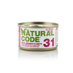 Natural Code in Jelly utilizza ingredienti naturali di alta qualità, come carne, pesce, verdure e cereali, per offrire una dieta equilibrata e nutriente al tuo gatto.
