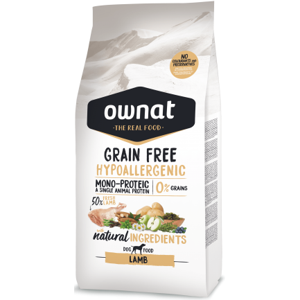 Ownat Grain Free Hypoallergenic Lamb è formulato senza cereali ed esclusivamente con carne di agnello come unica fonte di proteina animale, costituisce un’alternativa eccellente per escludere allergie e intolleranze ad altre fonti di proteine. Ideale per le diete ad esclusione.
