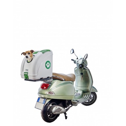 Realizzato in plastica colorata si aggancia tramite un supporto universale ai motocicli con un semplice clic, permettendo di trasportare l'animale in scooter, moto, bici o auto, in sicurezza e comfort.