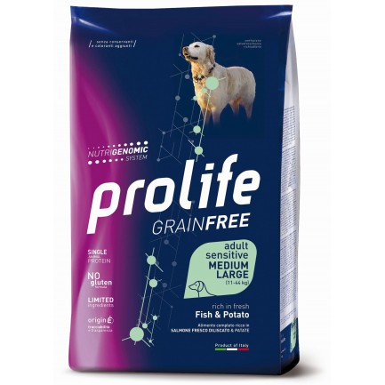 Prolife Sensitive GRAIN FREE Medium Large con Pesce e Patate per Cani