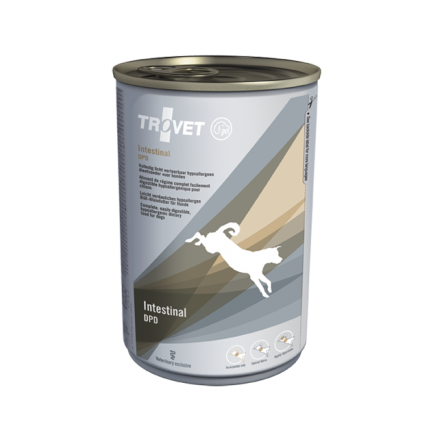 Trovet Intestinal Umido per Cani, è un alimento umido per cani con sensibilità digestive ed intestinali. Trovet Intestinal è raccomandato per cani che soffrono di disturbi gastrointestinali, diarrea, coliti, enteriti, allergie alimentari o intolleranze alimentari. Può essere dato anche ai cuccioli, a meno che non vi siano controindicazioni specifiche.