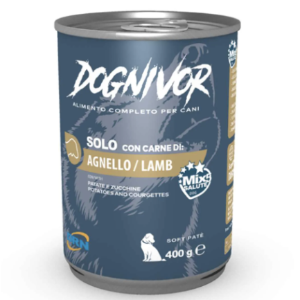 Skład : mięso jagnięce 88 %, ziemniaki 4 %, cukinia 2 %, oleje roślinne 0,5 % (olej lniany, źródło omega 3 i 6), łuska psyllium 1 %, minerały, ksyloza, szałwia. składniki analityczne wilgotność 81,2 %, białko surowe 8 %, tłuszcz surowy 4,2 %, włókno surowe 0,3 %, popiół surowy 2,2 %.