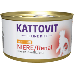 Karma Kattovit Feline Diet KIDNEY/Renal została specjalnie opracowana, aby zapewnić kotom obniżoną zawartość białka dzięki zastosowaniu wysokiej jakości białka w lekkostrawnej kompozycji. Wysoki poziom białka może mieć szkodliwy wpływ na nerki. Decydującym czynnikiem jest zawartość białka w stosunku do ilości energii. W Kattovit KIERE/Renal, w przeciwieństwie do konwencjonalnych karm, tylko około połowa energii pochodzi z białka. Wzbogacenie cytrynianem potasu ma działanie alkalizujące mocz i może zapobiegać tworzeniu się kryształów szczawianowych (profilaktyka szczawianowa). Poziom fosforu i sodu jest obniżony.