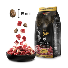Leonardo Fresh Meat with Duck and Chicken nie zawiera zbóż ani ziemniaków. Jedynie groszek i amarantus dostarczają niewielkiej ilości lekkostrawnej skrobi.