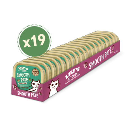 Mokra karma Lily's Kitchen Smooth Pate dla kotów ma miękką, gładką konsystencję, która sprawia, że nie można się jej oprzeć. Są pełne wysokiej jakości mięsa i ryb, które koty uwielbiają jeść. Bez dodatku cukru (rzadkość w przypadku karmy dla kotów) i bez zbóż, te przepisy są kompletne pod względem odżywczym!