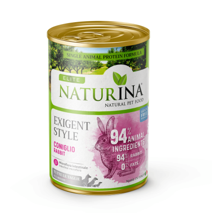 Exigent Style Rabbit with Potatoes to miękki pasztet bez zb óż z wysoką zawartością królika jako jedynego źródła białka zwierzęcego. Zawiera nasiona psyllium i zwiększoną ilość naturalnych źródeł FOS i MOS w celu utrzymania równowagi flory bakteryjnej i poprawy jędrności kału, yucca schidigera w celu złagodzenia zapachu.