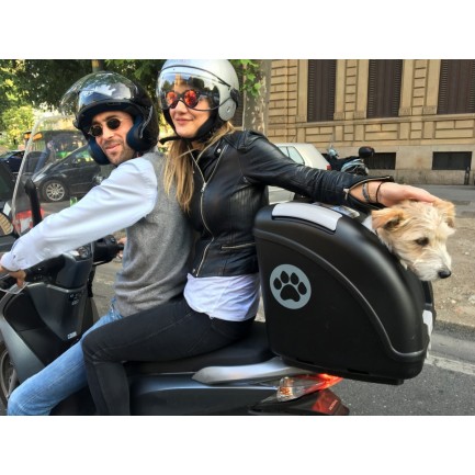 Wykonany z kolorowego plastiku, mocuje się za pomocą uniwersalnego uchwytu do motocykli za pomocą prostego kliknięcia, umożliwiając bezpieczny i wygodny transport zwierzęcia na skuterze, motocyklu, rowerze lub samochodzie.