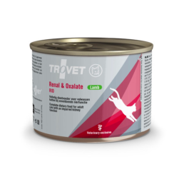 Mokra karma dla kotów Trovet Renal and Oxalate ma bardzo wysoką wartość biologiczną, która pozwala na mniejsze uwalnianie aminokwasów do krwiobiegu, zmniejszając stężenie mocznika. Ze względu na wysoki poziom kwasów omega-3 zmniejsza hiperfiltrację kłębuszkową i zmniejsza ryzyko powstawania kryształów i kamieni szczawianu wapnia.