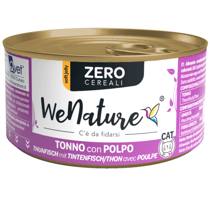 Karmy te nie zawierajązbóż, glutenu i skrobi, a ich formuła uwzględnia wrodzone potrzeby żywieniowe kotów, które są ścisłymi mięsożercami, a ich dieta jest bogata w białko i uboga w węglowodany. WeNature Zero ma na celu odtworzenie tej naturalnej diety, oferując receptury z wyselekcjonowanymi składnikami wysokiej jakości, wolne od barwników i konserwantów oraz całkowicie wolne od okrucieństwa.